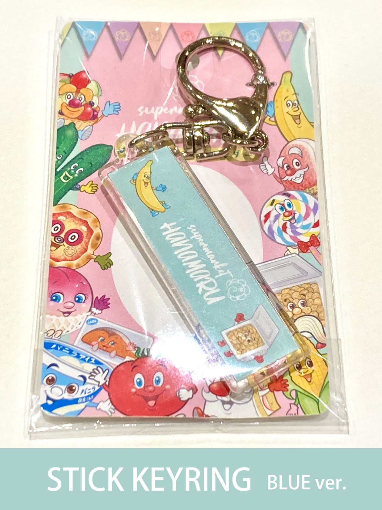 「スーパーマーケットはなまる」原画展で販売した【スティックキーホルダー(ブルー)】が、
