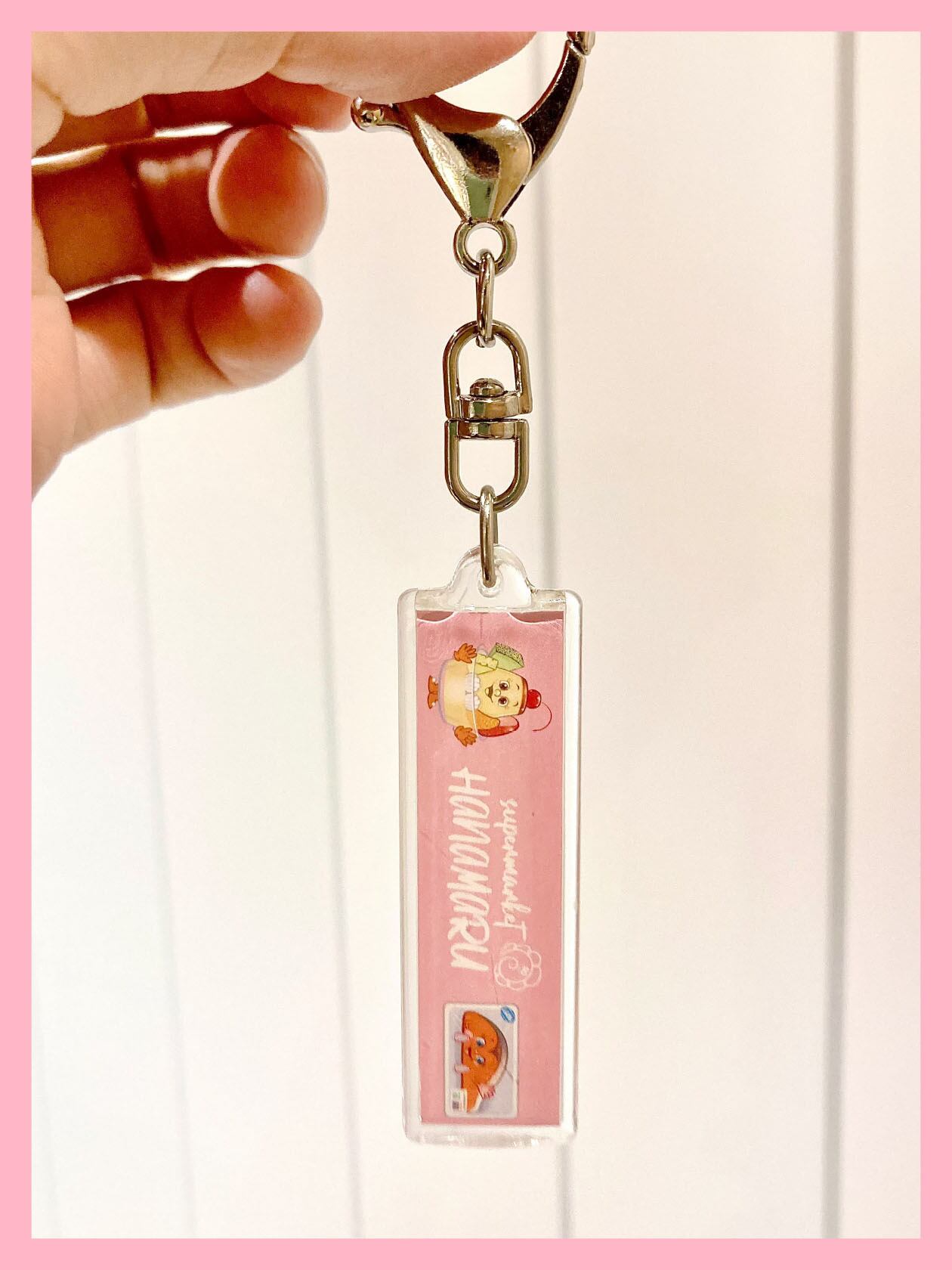 「スーパーマーケットはなまる」原画展で販売した【スティックキーホルダー(ピンク)】が、